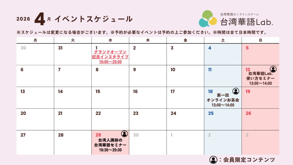 なお、講師による台湾華語セミナーのテーマは現在準備中です。