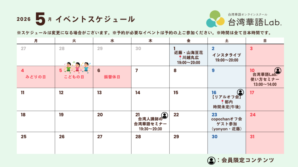 なお、講師による台湾華語セミナーのテーマは現在準備中です。